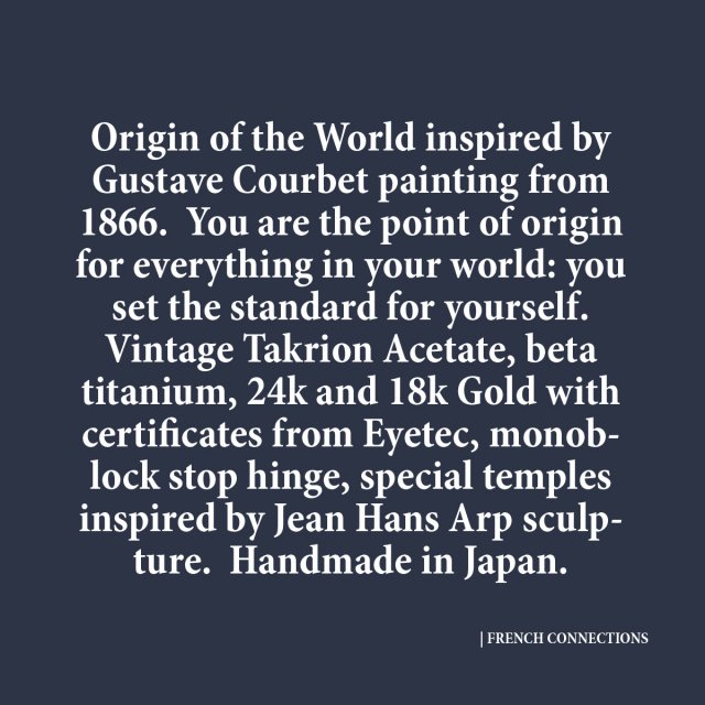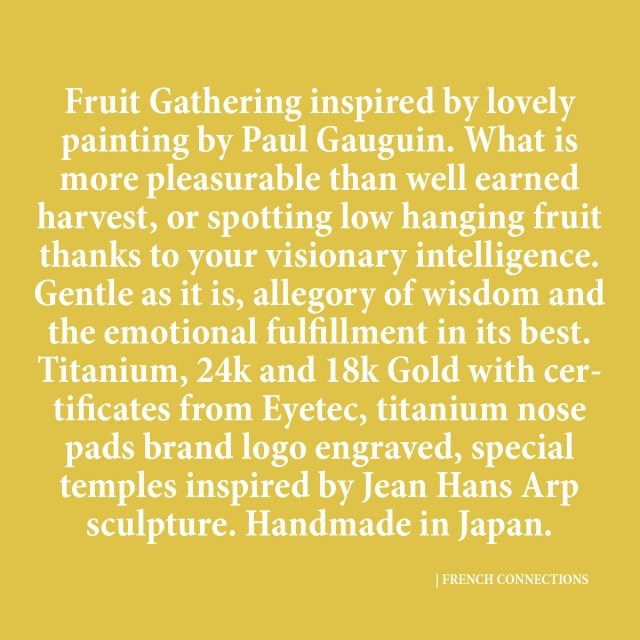 MASSADA is ART eyewear brand. We created FRENCH CONNECTIONS - 26 paintings of French artists or those who lived in France in one powerful studious interconnected art piece. It is work of art, loaded with meanings and serious intellectual effort. The beauty of logic, the conflict and the story of two forces in French history until present day. The path royalism has faded away into the revolution and republican system. This history is not done yet. The struggle goes on. "Capital in XXI Century" by Thomas Piketty ideas live, will show what will be the results of cleaning your hands with Louis XIV coat now. This is not the end of history. We live in interesting times, except more to come. We take it consciously to evaluate, and try to connect past with the future. Why not combine Gabrielle d'Estrées: nipple-pinching her sister with Paul Gauguin's Fruit picking? And why not add to it casino chips and giving them away to The Potato Eaters painted by Vincent van Gogh? Spin the roulette wheel, and try to discover the meaning of each link in between and the story behind. What will happen next? „Society expresses the sum of interrelations, the relations within which individuals stand. Art is always and everywhere the secret confession, immortal movement of its time.” Karl Marx.
