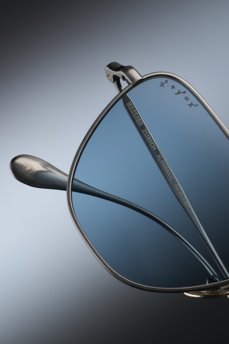 - Custom titanium nose pads in Lima Bean Curve shape with MASSADA logo and Equation x6 + y6 = x2