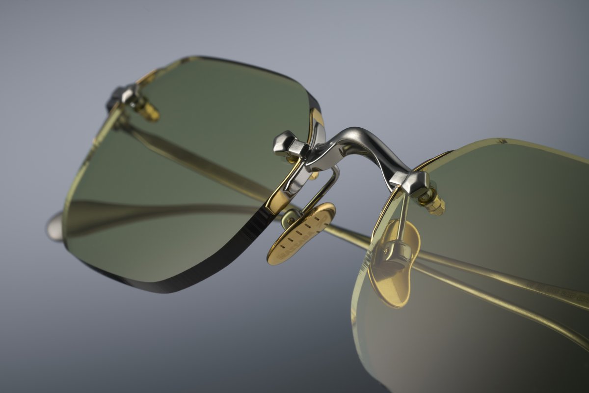 - Gold plated with several different colours including 24 Karat Gold. Multicolor precision of gold plating goes down 0,2 mm on the even surfaces. Each construction element is gold plated including screws and nose pads.