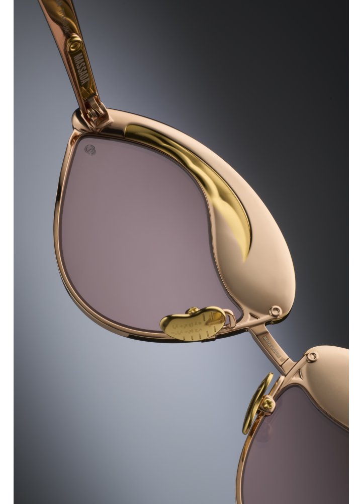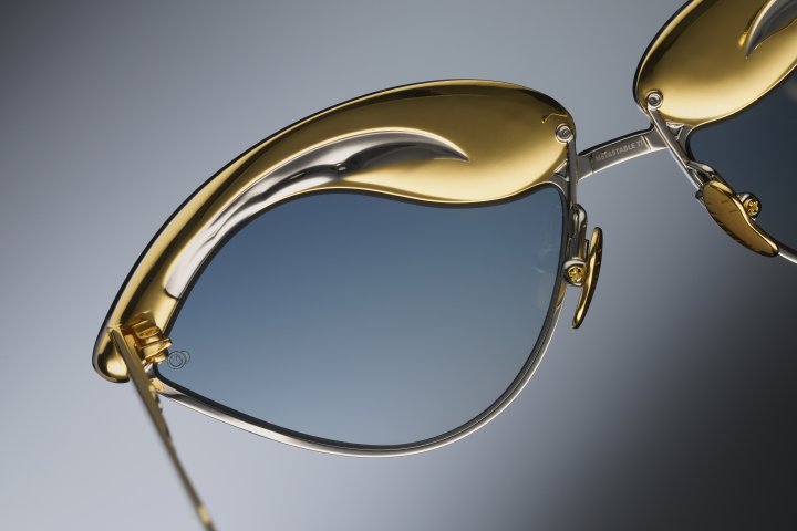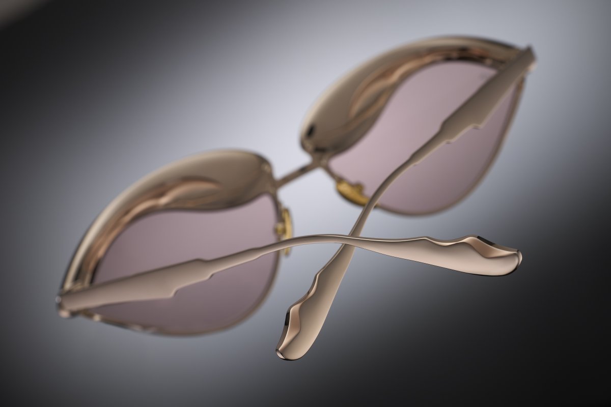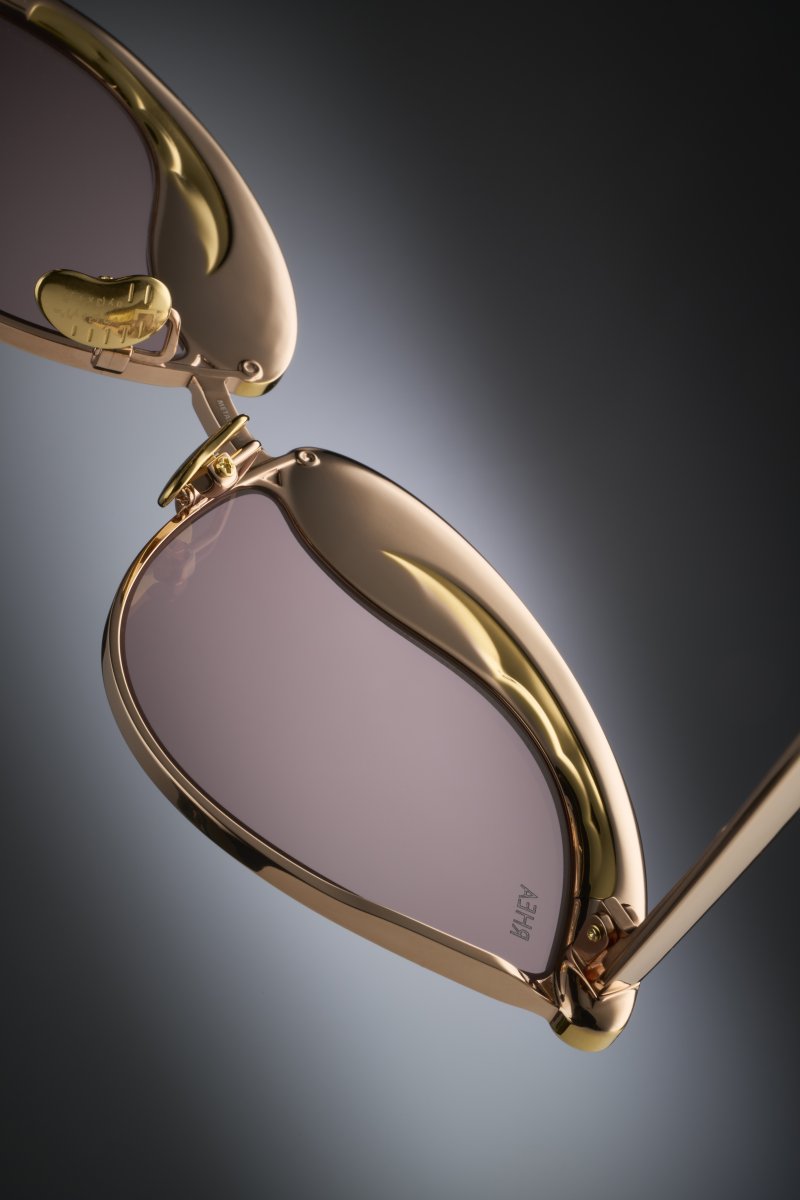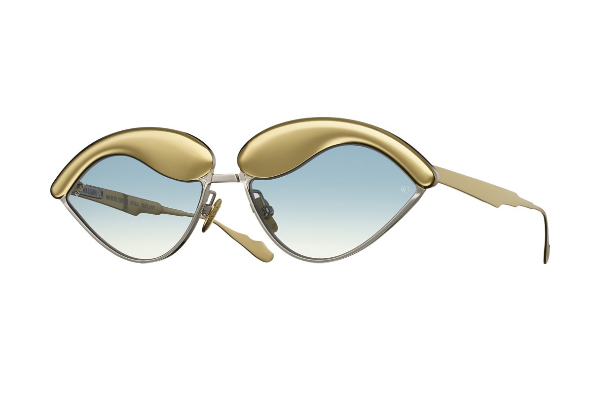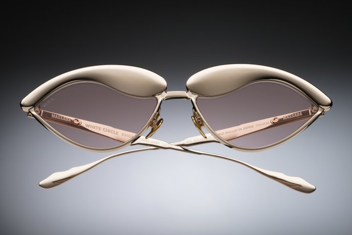 WHITE CIRCLE RHEA COLD ROLLED Titanium in JAPAN. Inspired by sinusoidal waves — from Gothic cathedral curves to the natural arc of the eyebrow — where smooth forms distribute energy, emotion, and beauty with precision. Finished in 24K gold plating, WHITE CIRCLE RHEA captures harmonic motion in eyewear design. MASSADA is making waves.