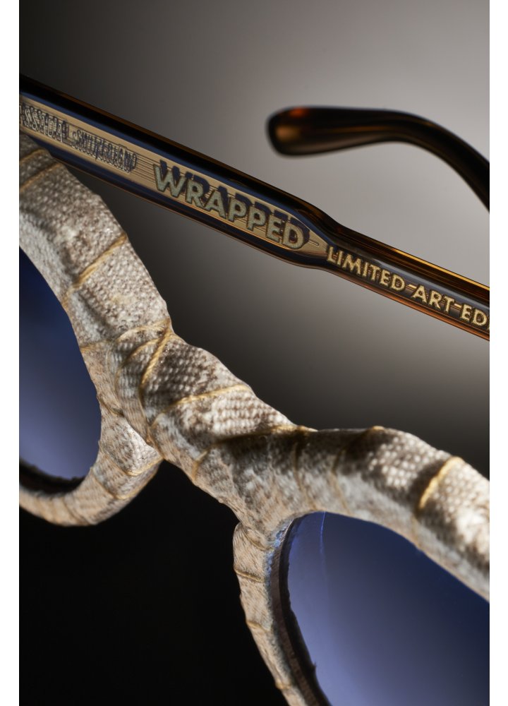 WRAPPED cutting-edge frame is inspired by Christo ART . The piece constructs curiosity of the object beneath and a space around it. Textile fabric used in this composition was the first material to be used in the sacred ART of Tsutsumu. Wrapping protects and provides good luck for the recipient. The object breathes. WRAPPED is a great symbolic journey dematerializing the frame and hiding its essence within. Protected and presented to you in a respectful relationship. It removes Obviousness. Bespoken handwrought artisanal labour strives to tangle strings of twine. Twine allocation is inspired by Jackson Pollock's Action Painting. It is random and well thought out at the same time. Fractal expressionism geometric patterns are laid down over the crumpled canvas. Each individual numbered ART PIECE is just One Unique Set of random geometric shapes never repeating itself. World Limited Edition of seventy idiosyncratic studies.